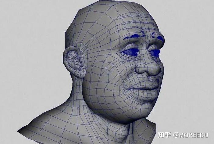 比如:眼睛在表情动画中的变化是最丰富的,因此眼眶周围需要有足够的伸展线。而头盖骨部位不会有肌肉变形和骨骼运动,此处的布线能够定型就可以了。耳朵的形体很复杂,但是它布线的密集只是为了起到增加细节的目的而已。