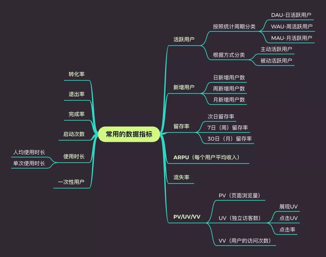 一般来说,互联网产品都要统计上述三种指标,但是往往根据产品的不同,数据指标的权重会有所不同。