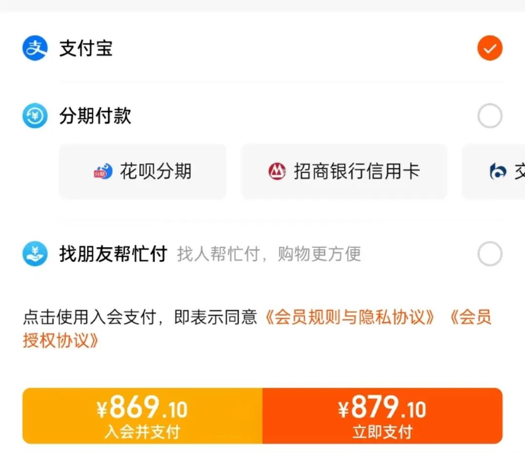 目前,在淘宝应用程序上选定商品后,在确认订单界面,消费者可以选择支付宝、分期付款、找朋友帮忙付三个支付选项,部分店铺还支持云闪付、数字人民币等。当消费者选择找朋友帮忙付的支付方式后,可以以复制口令的形式将口令手动粘贴给微信好友。微信好友通过复制口令自主打开淘宝,可以帮忙完成支付。