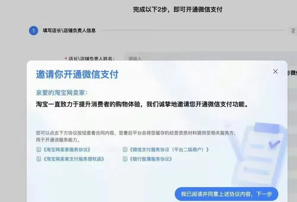 一位淘宝商家表示,今天正在向卖家开放,他也接收到了淘宝平台的信息,邀请他的店铺开通微信支付。