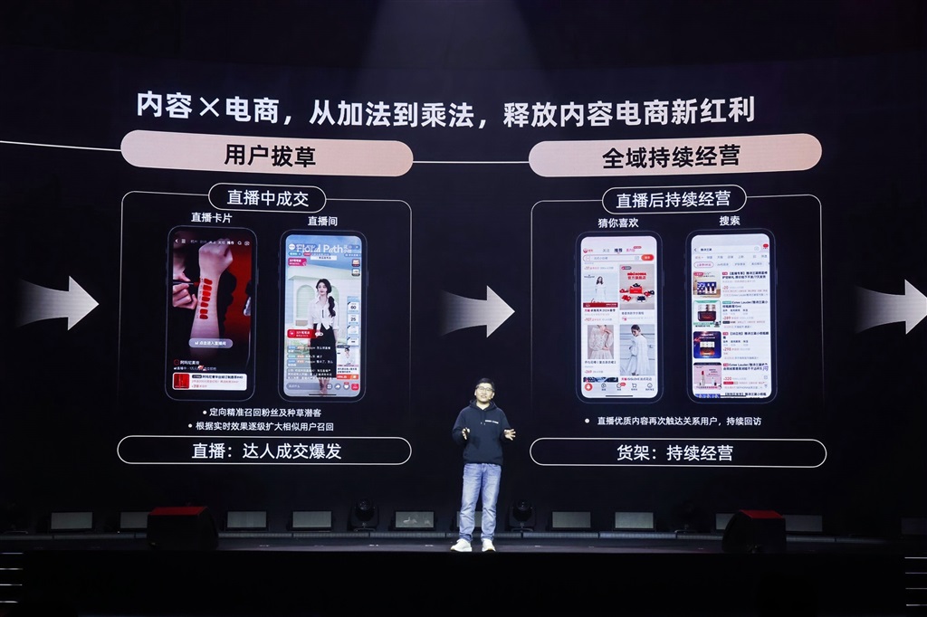 去年12月淘宝内容电商事业部组建后,淘宝直播和逛逛团队合并,直播和短视频、图文首度打通,为淘宝商家提升引流、转化、留存、复购带来了更大空间。淘天集团内容电商事业部总经理程道放表示:“2024年淘宝的内容和电商,将从加法变为乘法,释放新一轮内容电商红利。”