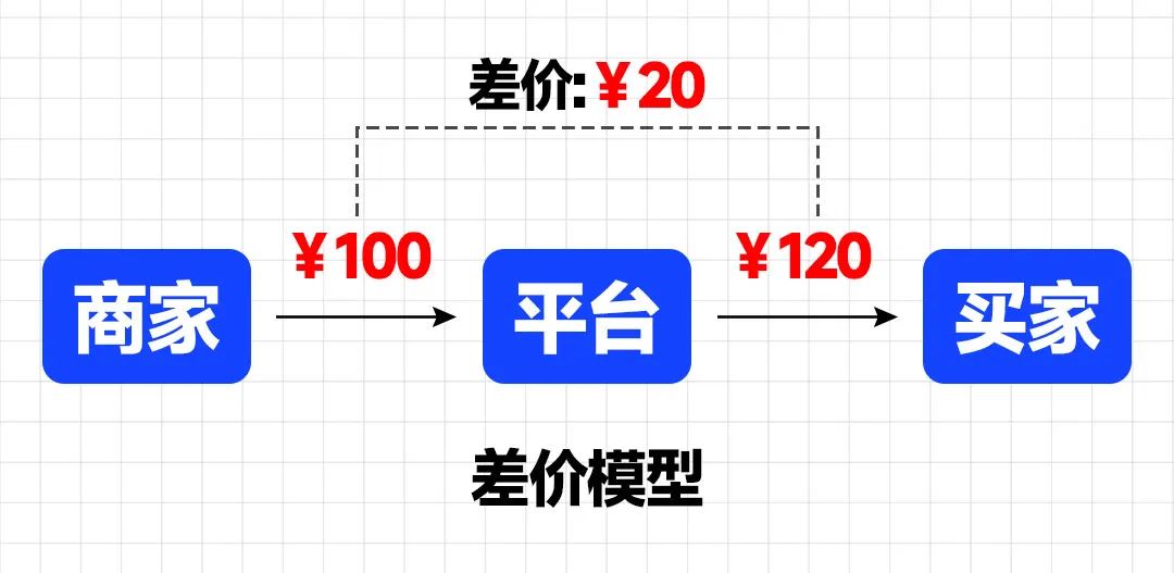 简单说,就是平台通过商品买卖价格的差额来赚钱。