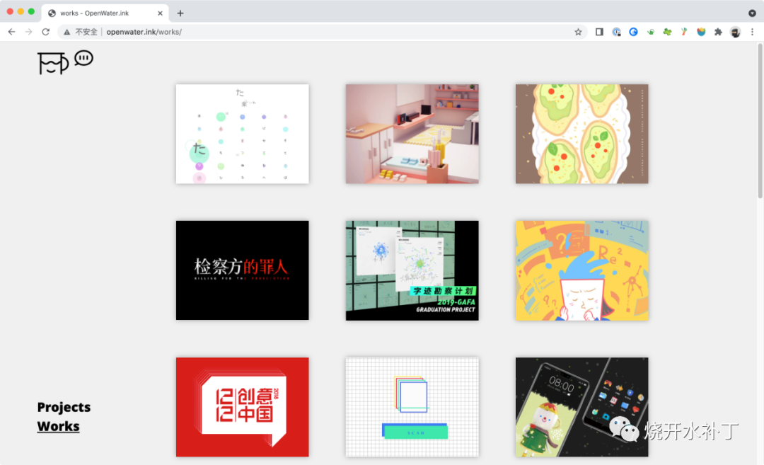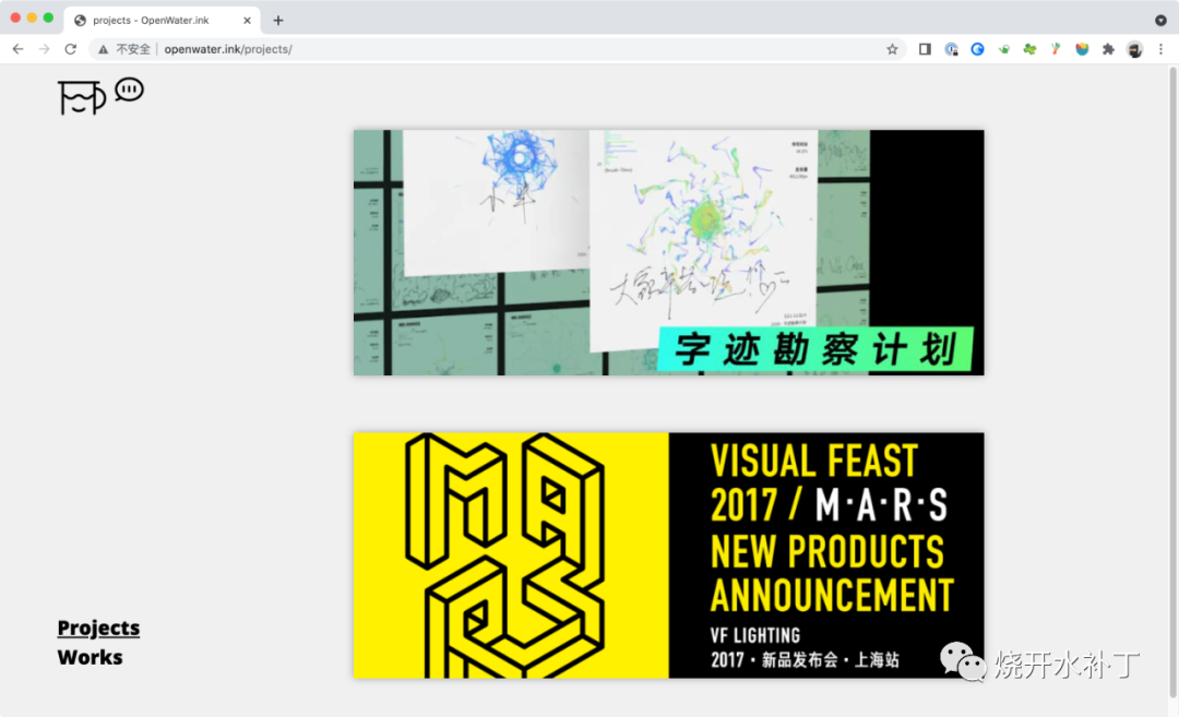 但我对这种划分方式并不是很满意,因为我的作品真要分类,那真是各种各样的都有,而且有的作品让我觉得很难定性。所以就决定不按形式来分类,而是分成了“works(作品)”和“projects(项目)”,区分标准只是基于项目的周期、复杂度和完成度而已。