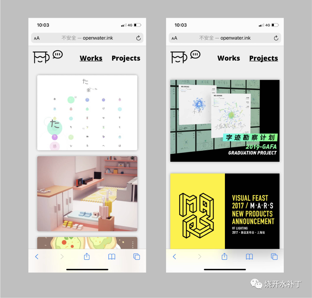 ( 手机端:Works页 vs Projects页)