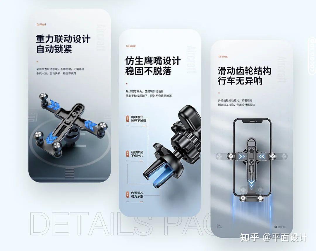 详情页的版式发展趋势。从一线城市到六线城市,移动端订单占比平均已达 80% 以上,甚至有一些比较极端的案例移动端订单占比高达 90% 以上,所以 PC 端详情页设计他们基本已经直接放弃了,而是着重打理移动端详情页。而用户在移动端浏览详情页和在 PC 端浏览详情页体验是不一样的,比如手机屏幕基本都是竖屏的,而且尺寸偏小,一只手掌即可掌握,而PC屏幕现在普遍都是23 寸以上,屏幕越来越大,基本是横屏,这也就衍生了一个移动端详情页设计要遵循竖版思维的理念,也就是文案以及产品图可能更适合上下排版而不是左右排版。