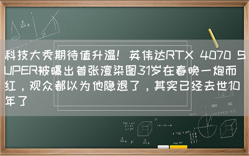 科技大秀期待值升温!英伟达RTX 4070 SUPER被曝出首张渲染图31岁在春晚一炮而红,观众都以为他隐退了,其实已经去世10年了