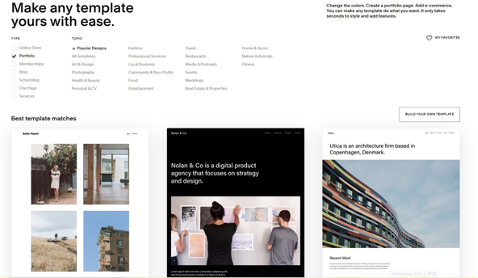 这个平台上的模板比较全面丰富,但有专门的作品集网站分类标签,大家勾选portfolio选项,就可以找到许多适合作品集的模板啦!非常方便。