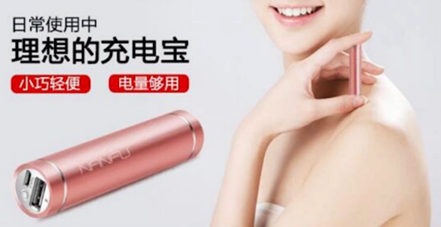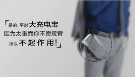 把用户对充电宝的需求从电量、品牌、迷你的需求转变到小巧轻便,并且电量够用上。下图通过一个女性将南孚充电吧放在肩胛骨上来突出表现充电宝的小巧轻便。