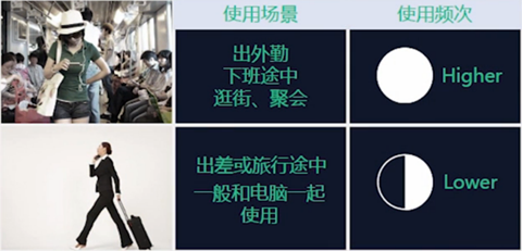 为了能够更好地对客户做需求引导,为此做了针对充电宝的使用场景调查,发现客户在出外勤、下班路上、逛街、聚会上使用充电宝的频次很高,而在出差和旅行上使用充电宝的频次会较低。
