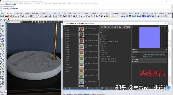 14、我们调整大理石材质,添加漫反射以及凹凸的贴图,这里注意我们的凹凸贴图是蓝色的,这里是法线贴图,需要调整为法线。