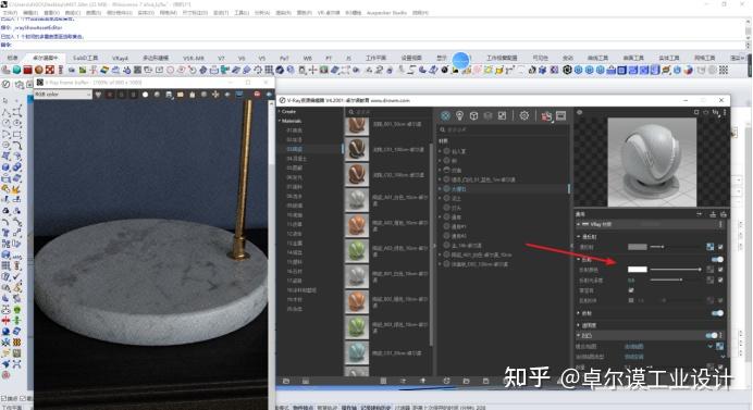 07、我们开始调整盆栽的材质,我们先调整外面的陶瓷,可以直接在材质库里面找一个陶瓷修改颜色贴上即可。